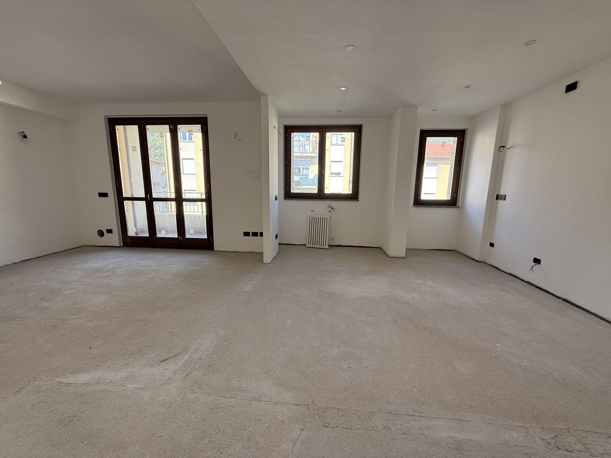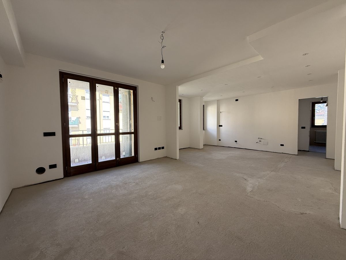 Luminoso soggiorno con angolo cottura e accesso al terrazzo di 6 mq