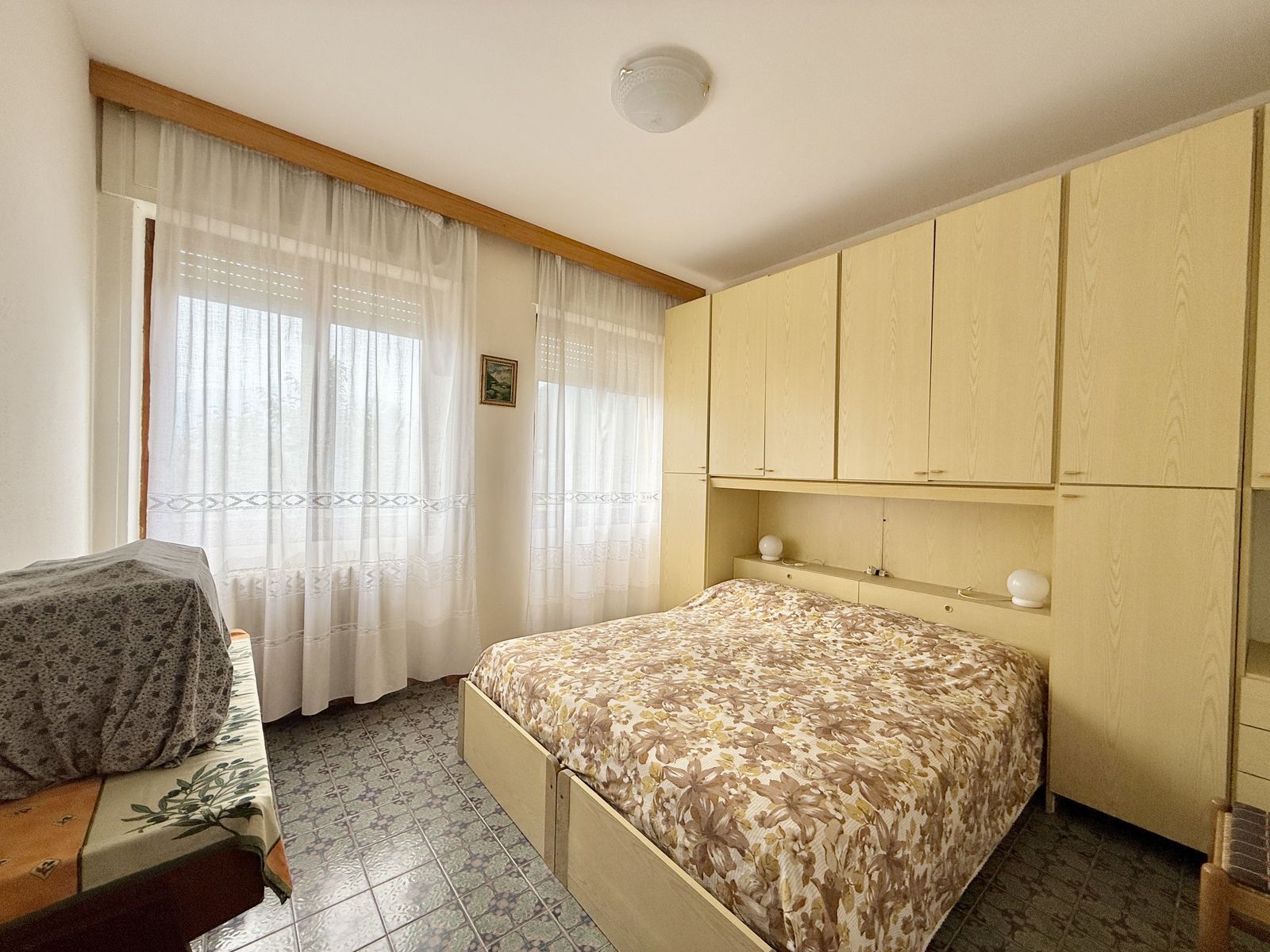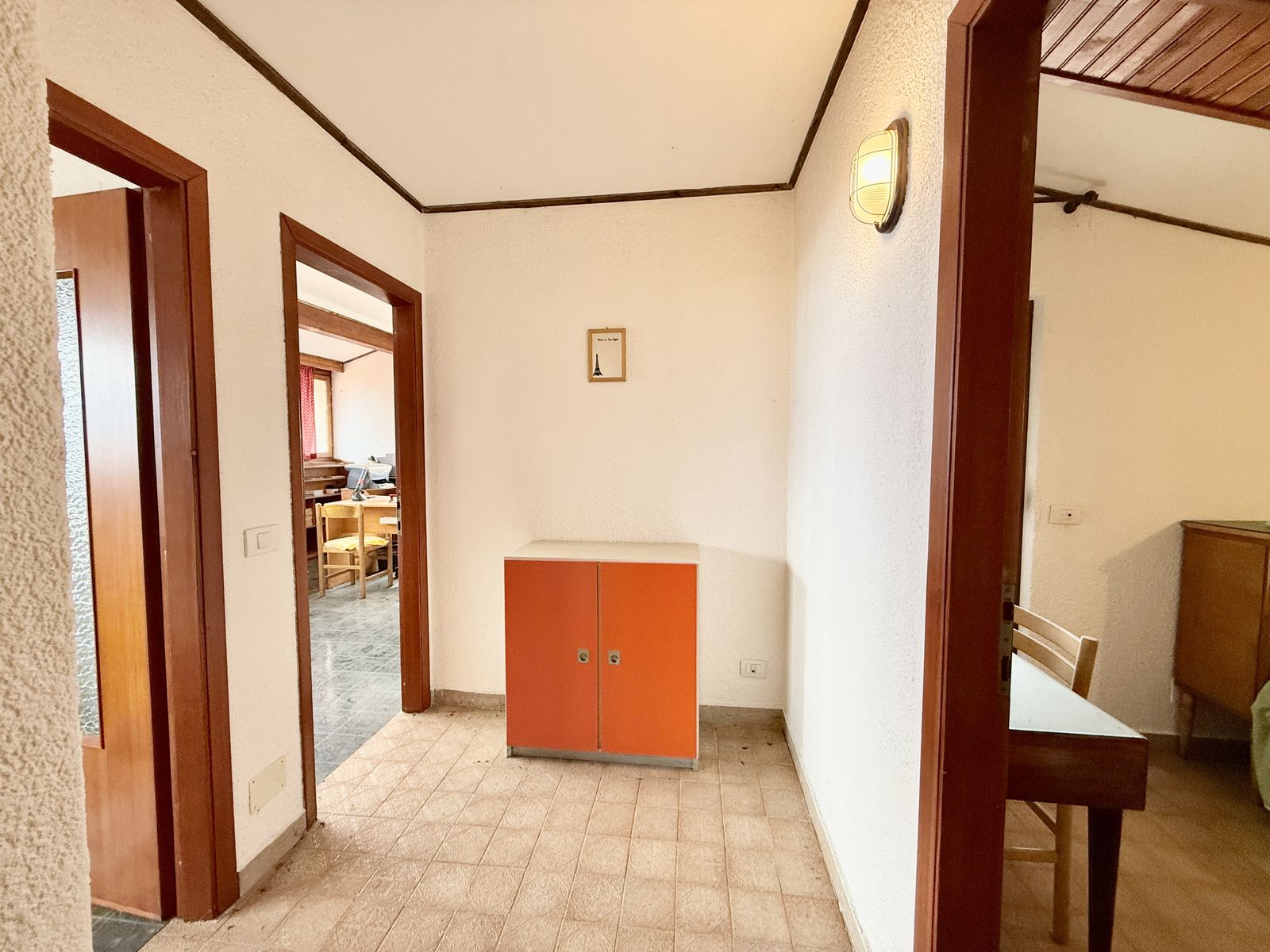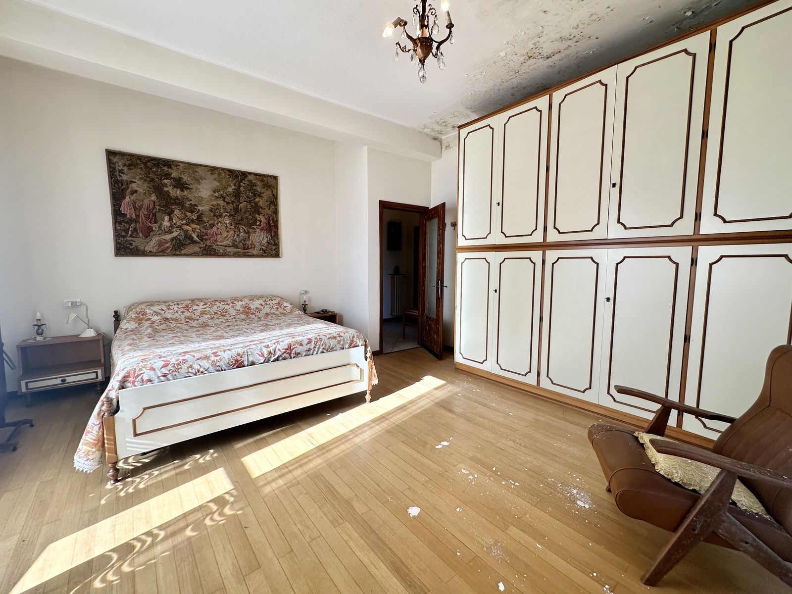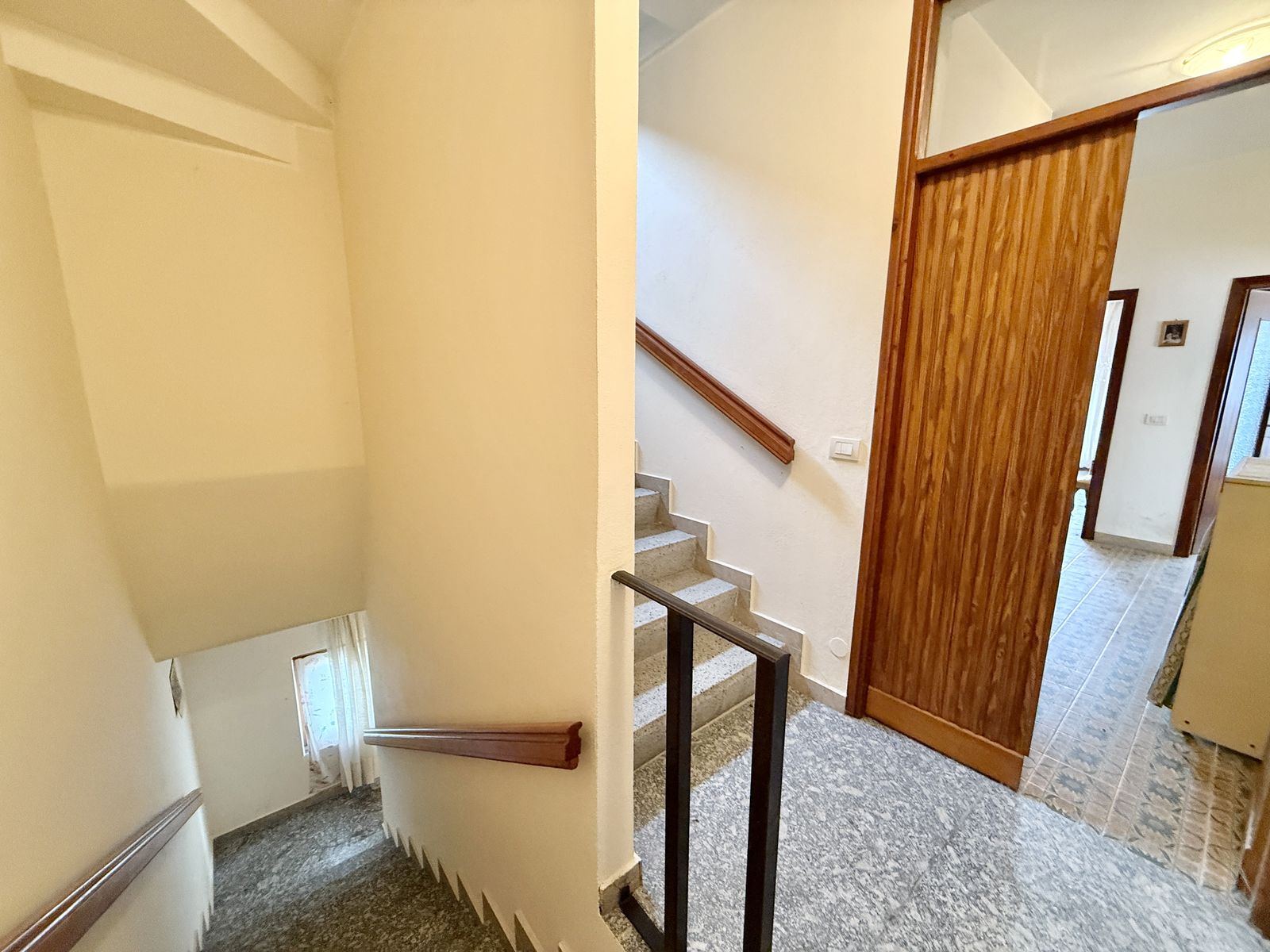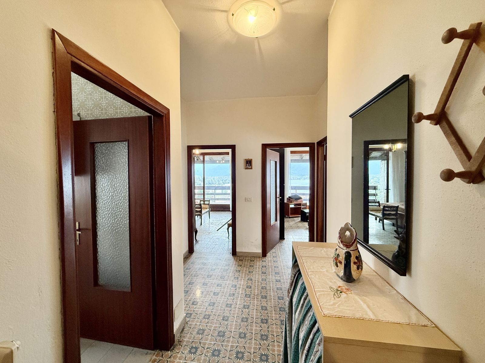 Il primo piano di mq.61 ospita un appartamento indipendente con due camere, cucina, ripostiglio e bagno finestrato; entrambe le camere accedono al balcone coperto di circa 50 mq, con doppia esposizione e vista panoramica.