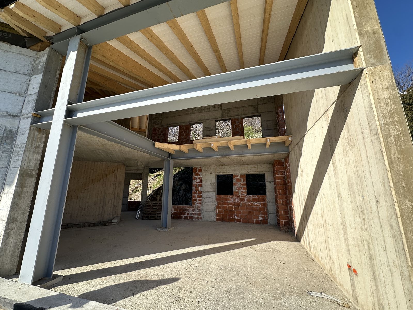 La struttura è completamente terminata, e il venditore ha già definito i progetti per gli interni e ha ricevuto preventivi per ultimare i lavori, che ammontano a circa 550.000-580.000 €. I costi per la sistemazione del giardino e la realizzazione di una piscina (non prevista nel progetto approvato) sono separati.