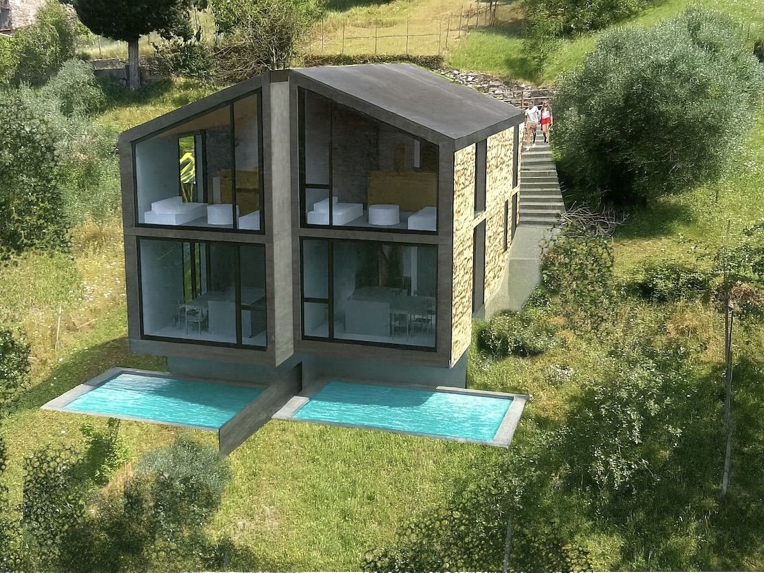 Lago Como Gravedona ed Uniti In moderno edificio con ampie vetrate PRENOTASI due eleganti villette semindipendenti con piscina privata e vista lago.
